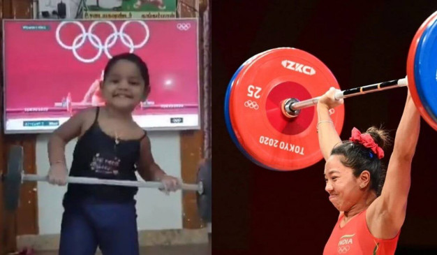 Viral Video: Cute little girl goes viral after imitating Chanu in front of T.V | नन्हीं नकलची पर आया मीरा बाई चानू को प्यार, कहा just love this.